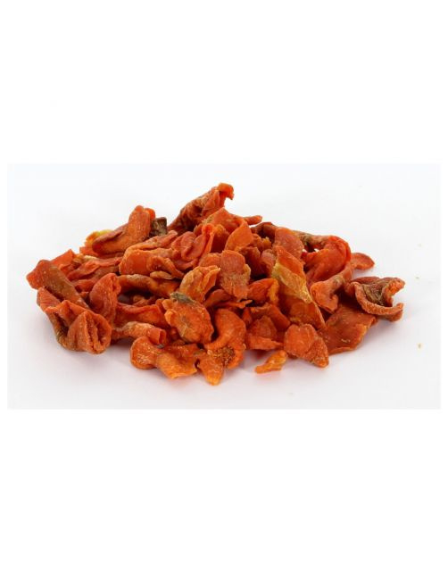 Afhankelijk van de grootte van je dier kan je dagelijks een paar schijfjes geven, als tussendoortje of gemengd door het hoofdvoer. De snack bestaat uit 100% natuurlijke wortelen.