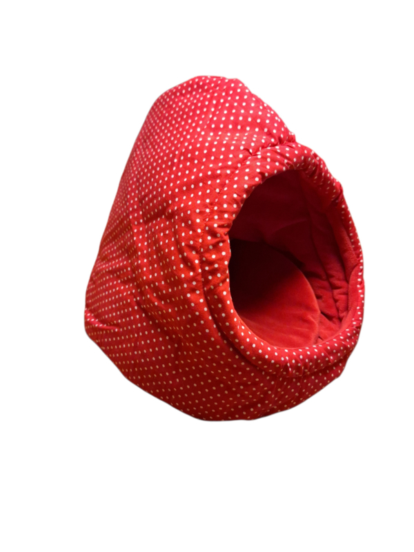 Theemuts met extra versteviging " rood met witte stipjes "