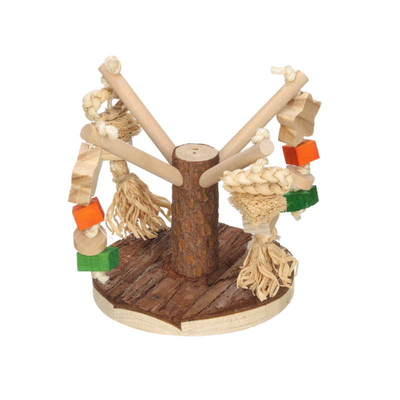 Door de combinatie van vaste en bewegende elementen blijft het speeltje interessant en zorgt het voor afwisseling in het verblijf. Dit helpt om dieren actief en bezig te houden.