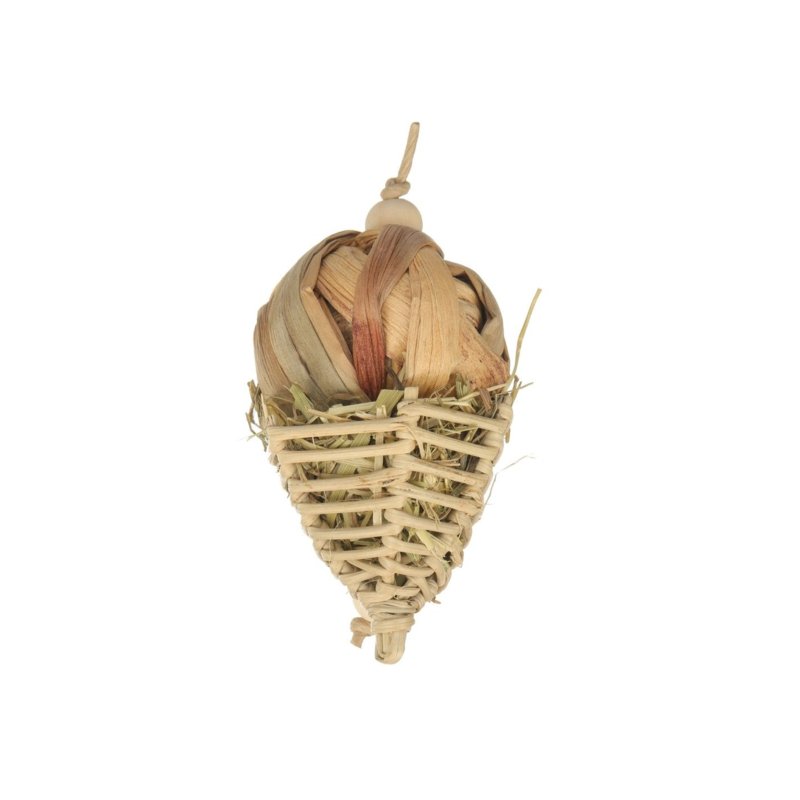 Dit natuurlijke speeltje is gemaakt van waterhyacint en rattan, twee stevige en veilige materialen die perfect zijn om aan te knagen. Deze natuurlijke vezels sluiten goed aan bij het instinctieve gedrag van konijnen en knaagdieren en helpen tegelijkertijd bij het onderhouden van gezonde tanden.