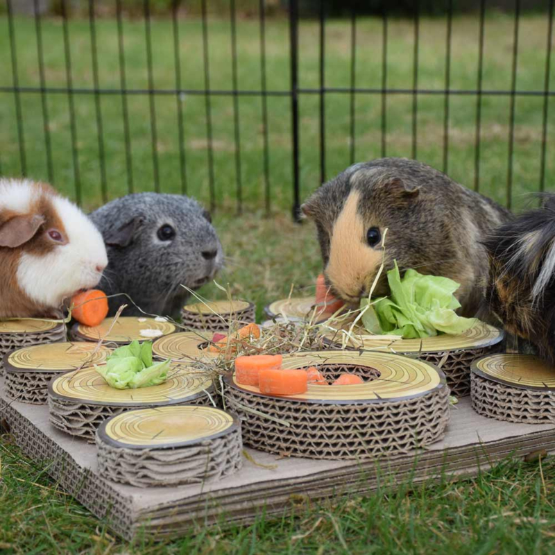 - Gemaakt van eetbaar karton, speciaal ontwikkeld om aan te krabbelen en op te knagen.