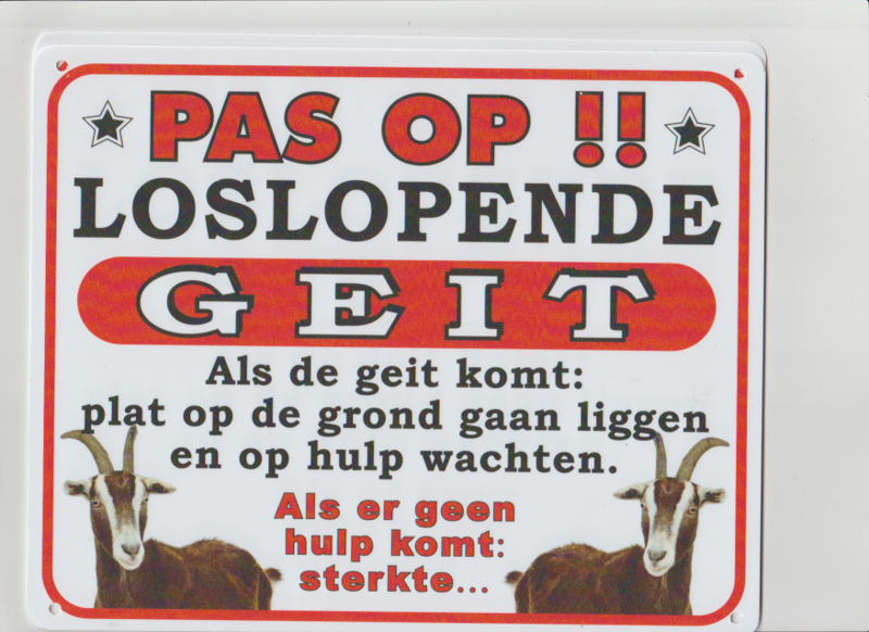 Waakbord: Pas Op!! Loslopende gansafmeting 20 x 25 cm met in elke hoek een gaatje voor bevestiging